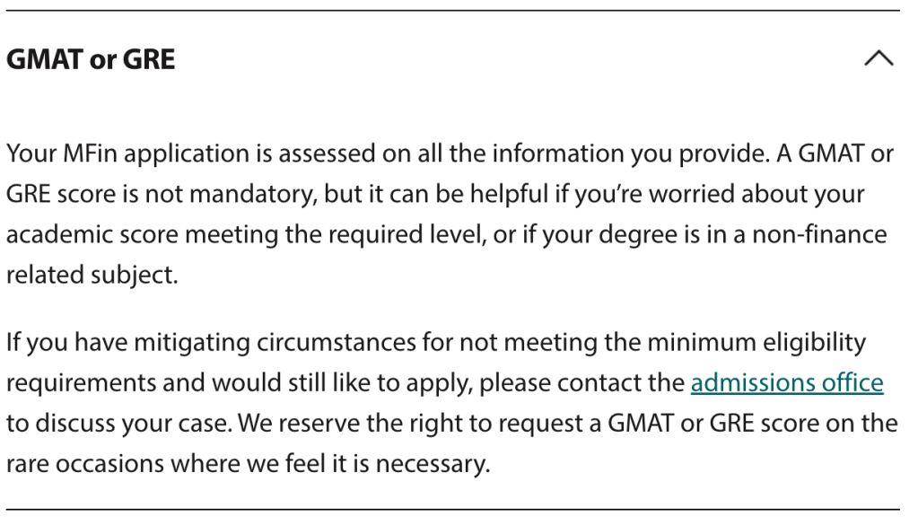 所以其實如果你申請的是MPhil in Finance,沒有必要去考 GRE/GMAT唷!
